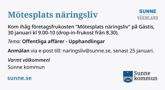 Anmälan till naringsliv@sunne.se senast 25 januari.